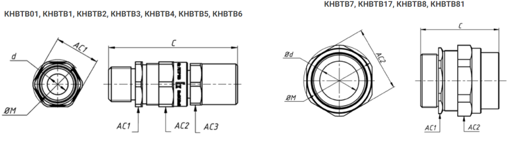 Взрывозащищенные кабельные вводы КНВТВ, метрическая резьба ГОСТ 24705 Метрическая