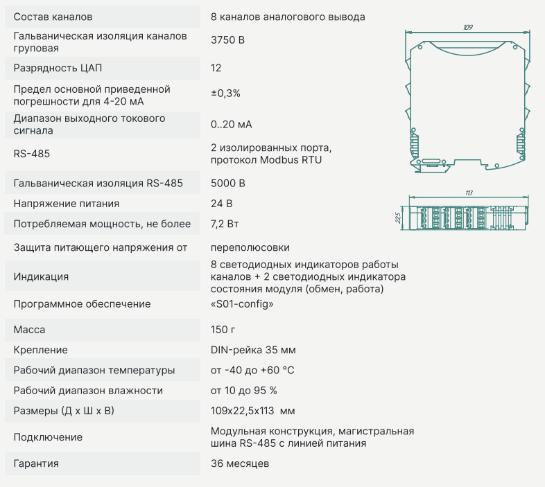 Купить Модуль аналогового вывода S01.AO08.01 по низкой цене
