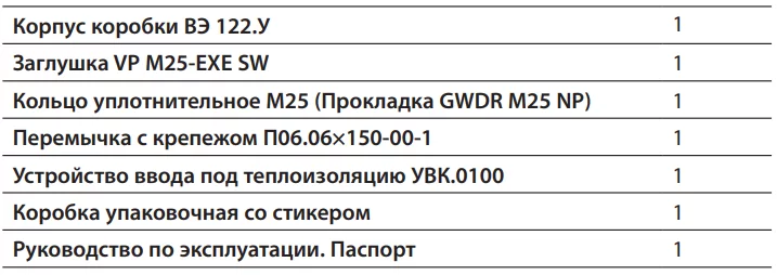Комплект поставки соединительной коробки ВЭ 122.У: