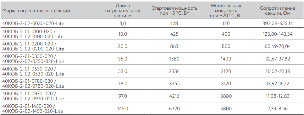 Купить 40КОБ-2-02-0100-020-Lite резистивная нагревательная секция для обогрева бетона по низкой цене