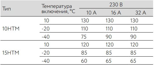 (или суммарная длина секций одной марки, подключаемых параллельно) в зависимости от типа автоматического выключателя питания: