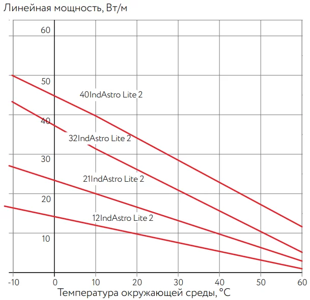 - Характеристики саморегулирования повышают безопасность и надежность кабеля. IndAstro Lite не будет перегреваться или перегорать, даже когда его отдельные участки накладываются друг на друга. Его тепловыделение саморегулируется в ответ на изменение температуры;