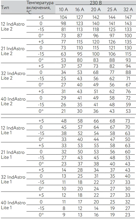 Температурные характеристики кабеля IndAstro Lite2: