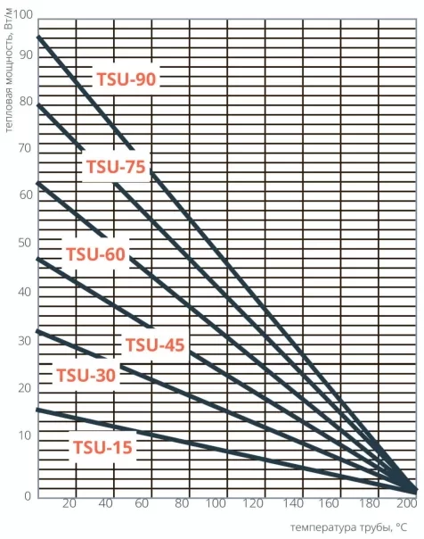 В греющих кабелях TSU нагревательным элементом выступает проводящая матрица, которая способна принимать различные величины сопротивления в зависимости от температуры окружающей среды. Кабели изготавливаются экструзией с равномерным охлаждением, из-за чего по всей длине кабеля мощность и сопротивление распределены равномерно.