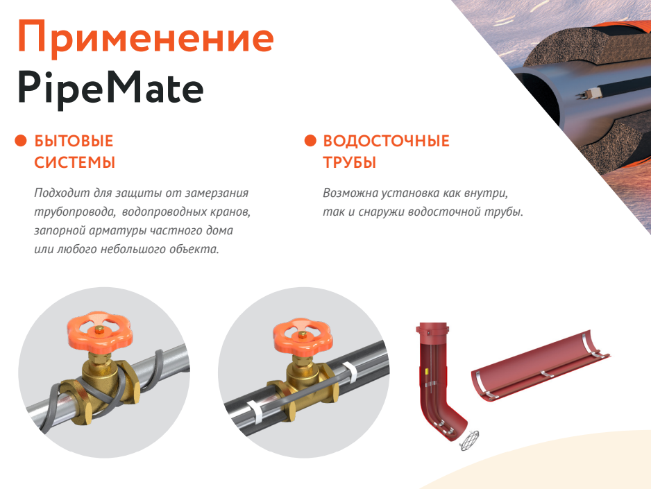 Преимущества PipeMate 10Вт/м 04м: