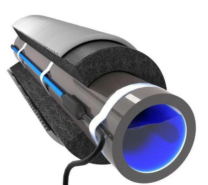 В целях электробезопасности и защиты матрица имеет изоляцию из термопластичного эластомера (ТПЭ), поверх которой наложена оплетка из луженой меди и оболочка из ТПЭ. Длина и мощность нагревательной секции выбирается, исходя из длины трубы и толщины теплоизоляции. Соединительная и концевая муфты изготовлены в заводских условиях, надежны и герметичны.