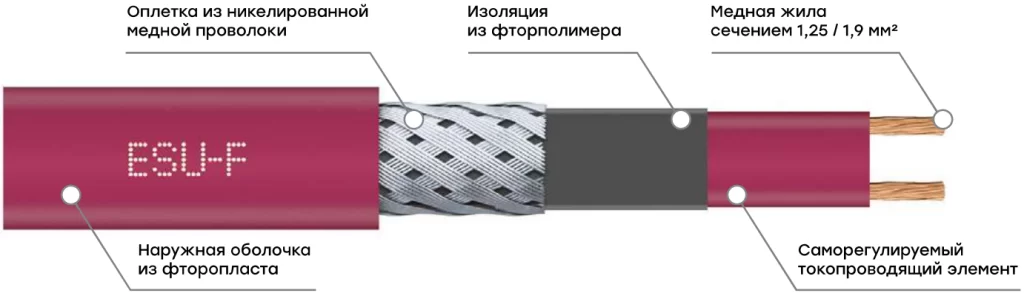 Саморегулирующийся греющий кабель ESU-15F (15 Вт/м) 50 м, фторопласт