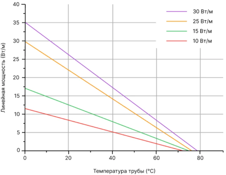 Номинальное тепловыделение в нормированных условиях для саморегулирующихся нагревательных кабелей.