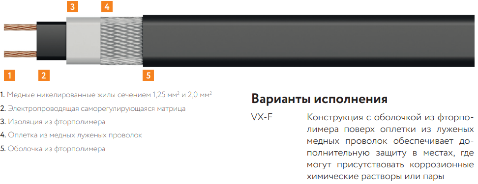 Конструкция греющего кабеля 80VX2-F