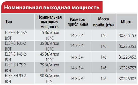 Саморегулирующийся греющий кабель ELSR-SH-90-2-BOT