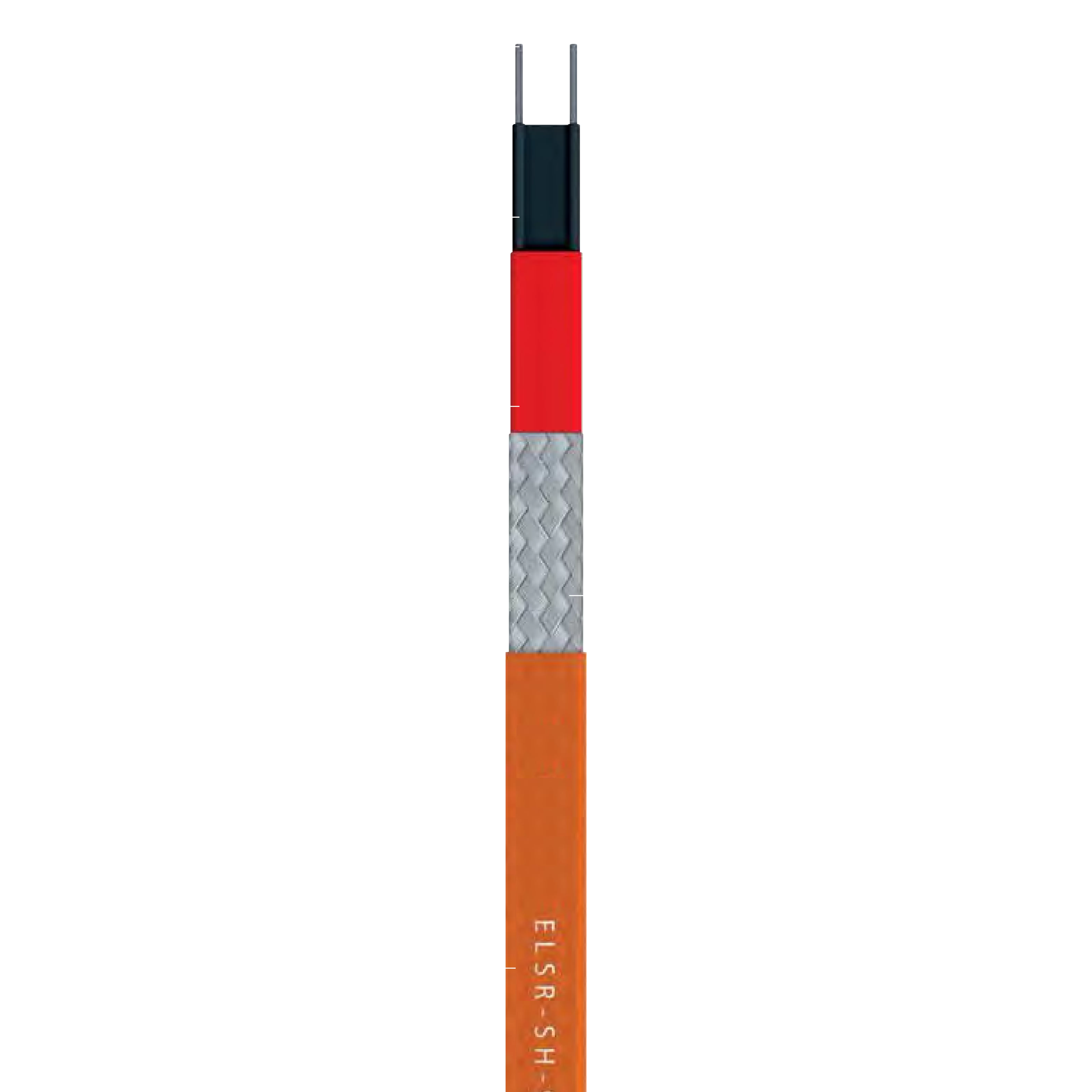 Сверх высокотемпературный саморегулирующийся нагревательный кабель. Универсальный саморегулирующийся нагревательный кабель ELSR-SH предназначен для высокотемпературного промышленного применения до 250 °C. Имеет допуск к применению в опасных зонах, устойчив к воздействию агрессивных химикатов, масел и жидкого топлива. Благодаря высокой химической стойкости обеспечивается длительный срок эксплуатации.