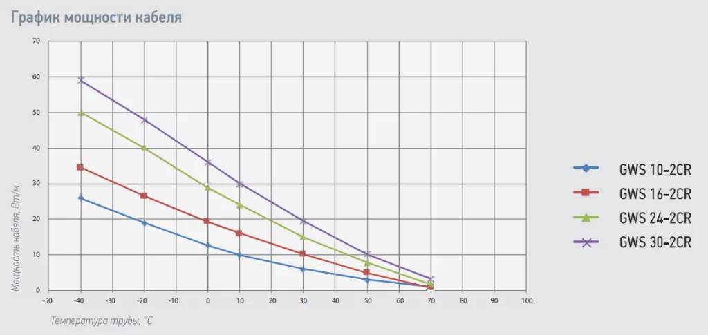 Мощность кабеля LAVITA GWS изменяется в зависимости от температуры окружающей среды.
