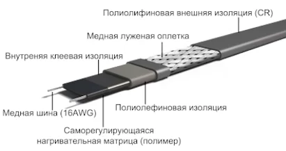 - Автоматически регулирует тепловыделение в ответ на изменение температуры трубы;