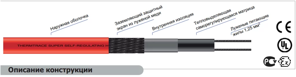 Саморегулирующиеся нагревательные кабели состоят из двух параллельных токопроводящих жил, заключенных в полупроводниковую саморегулирующуюся матрицу. Это означает что нагревательный кабель автоматически реагирует на изменения окружающих условий. С увеличением температуры синтетический материал матрицы расширяется, молекулярные силы и связи между углеродистыми частицами ослабевают, уменьшая проводимость. И наоборот, при уменьшении температуры проводимость увеличивается, так как увеличиваются связи между углеродистыми частицами.