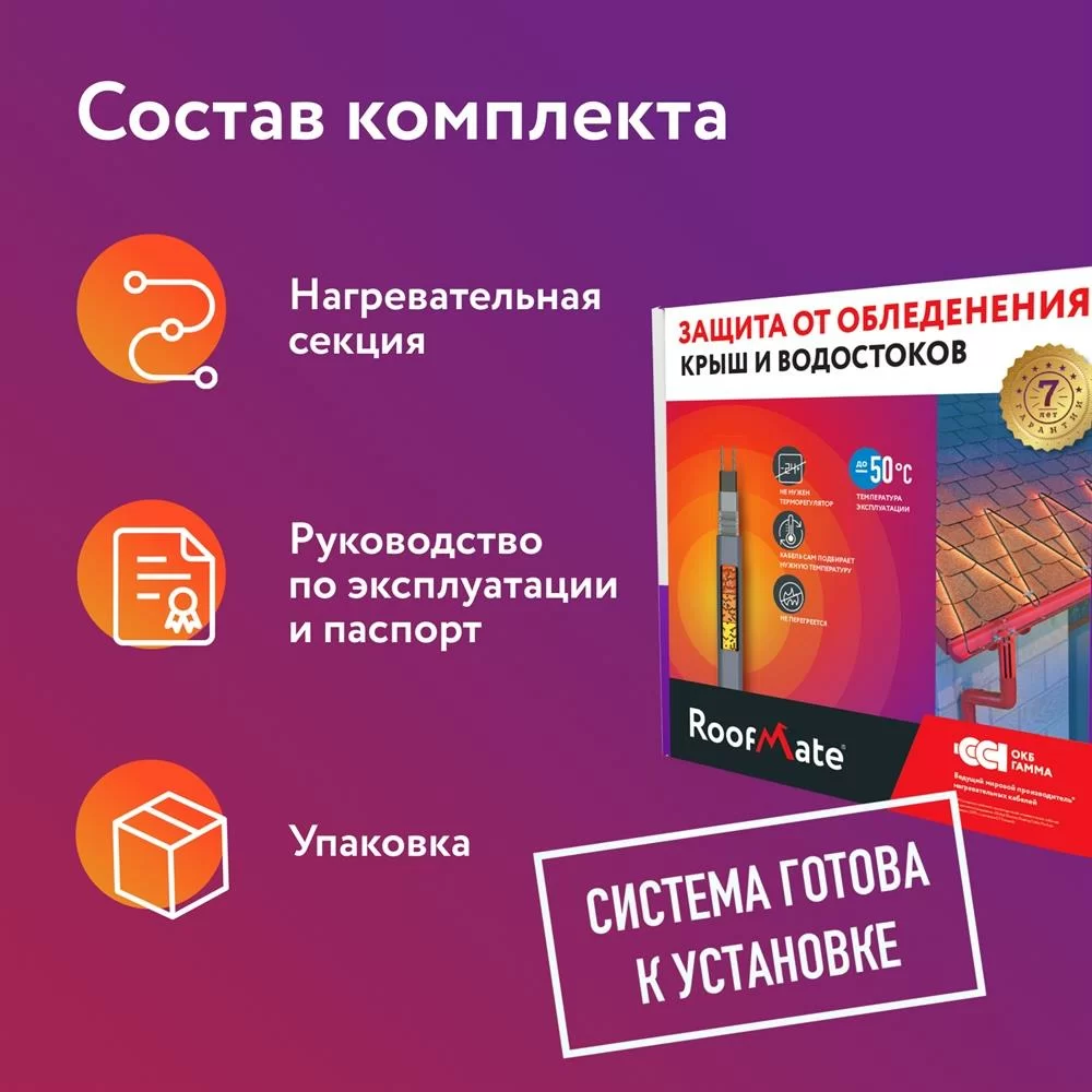 Купить Комплект саморегулирующегося греющего кабеля RoofMate 30Вт/м 05м по низкой цене