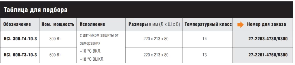 Обогреватели имеют постоянное омическое сопротивление. Благодаря специальной конструкции алюминиевого профиля создается каминный эффект, что дает возможность равномерного распределения температуры внутри коробок и шкафов. При перегреве обогреватели отключаются от сети, так как нагревательный элемент соединен с плавким предохранителем.Функции HCL (27-2261-4760/B312):
