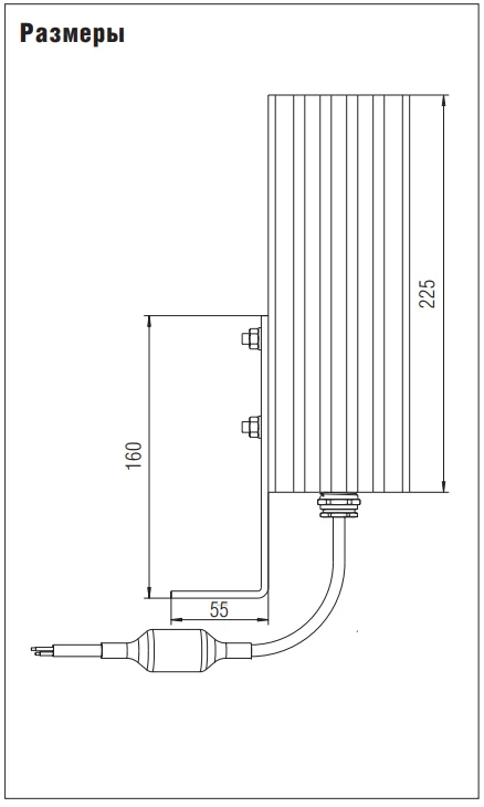 Расположенный в питающем проводе термостат поддерживает внутреннюю температуру в нужных пределах и препятствует превышению допустимой окружающей температуры обогревателя. Чтобы не произошло аккумуляции тепла, нужно соблюдать предписываемые монтажные расстояния. Ребра накрывать нельзя, чтобы не нарушить конвекцию.