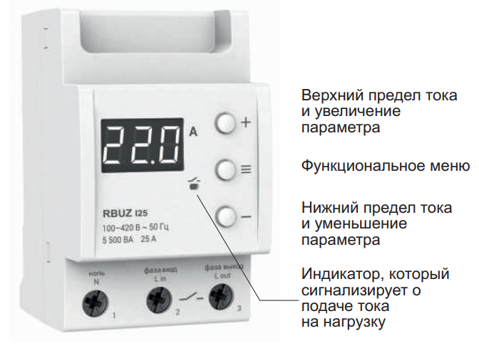 Реле тока предназначено для установки внутри помещений. Риск попадания влаги и жидкости в месте установки должен быть минимален. При установке во влажных помещениях, реле тока должно быть помещено в оболочку со степенью защиты не ниже IP55 по ГОСТ 14254 (частичная защита от пыли и защита от брызг в любом направлении).Температура окружающей среды при монтаже должна находиться в пределах –5...+45 °С. Реле тока монтируется в специальный шкаф, позволяющий производить удобный монтаж и эксплуатацию. Шкаф должен быть снабжен стандартной монтажной рейкой шириной 35 мм (DIN-рейка). Реле тока занимает в ширину три стандартных модуля по 18мм. Высота установки реле тока должна находиться в пределах 0,5...1,7 м от уровня пола. Реле тока монтируется и подключается после установки и проверки нагрузки. Реле устанавливают после защитного автоматического выключателя (АВ), который дублирует защитную функцию. Автоматический выключатель (АВ) устанавливается в разрыв фазного провода, как показано на Схеме 2. Он должен быть рассчитан на номинальный ток нагрузки вашего реле тока.